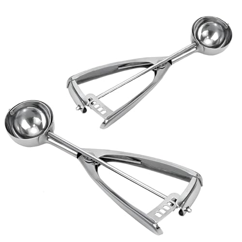 Generic - معلقة تشكيل البسكويت متوسطة الحجم من الفولاذ المقاوم للصدأ 304 بزناد مريح للغرف بدون مجهود للأيس كريم وكرات اللحم والمافن وغيرها (قطعتين)