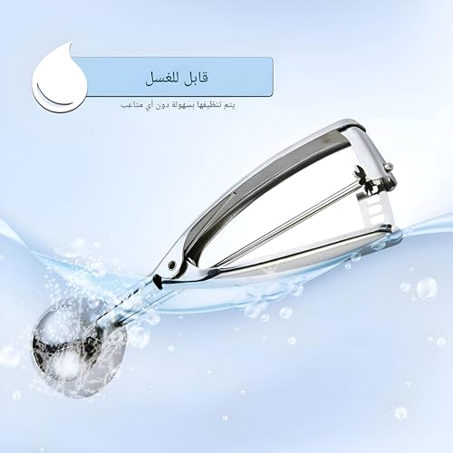 - إحدى الميزات البارزة لمغرفة الآيس كريم هذه هي أنها مزودة بمقبض سهل الضغط. يسمح هذا التصميم المبتكر بتشغيل سهل دون مجهود، مما يتيح لك إخراج الايس كريم أو الخلطات الأخرى بضغطة لطيفة فقط. هذا يعني أنه يمكنك الاستمتاع بحلوياتك المفضلة دون عناء المعاناة مع المغرفة التقليدية، مما يجعلها أداة موفرة للوقت في مطبخك.