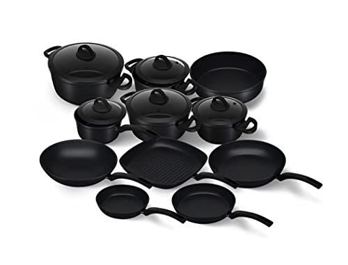 - طقم حلل جرانيت الحيوي من كوكين 16 قطعة (20-22-24-28) + كسرولة 18 سم + طاسة قلي (20-24-28) سم + طاسة ووك 28 سم + شواية 28 سم + طبق فرن 28 سم - اسود