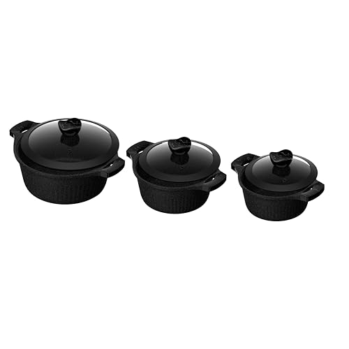 - طقم جرانيت مصبوب، (18-20-24) - لون أسود - 6 قطع