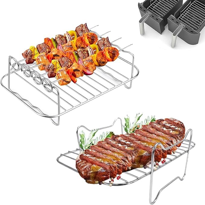 Generic - رف شبكي للطهي - حشوة من الستانلس ستيل المقاوم للحرارة العالية للمقلاة الهوائية، يعزز القرمشة، يقلل من استخدام الزيت، ويدعم الطبخ متعدد الطبقات