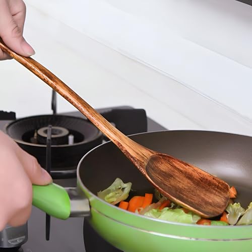 Generic - مقبض طبخ - ملعقة مسطحة خشبية بمقبض خشبي مريح، مصممة للتقليب الدقيق وقلب البيض وتحريك الصلصات وحماية المقالي غير اللاصقة (قطعة 1)