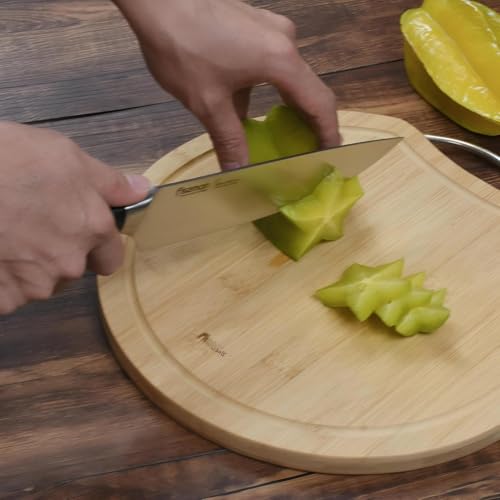 - يبلغ الطول الكلي 33 سم وعرض 6.7 سم وارتفاع 1.7 سم وبنية خفيفة الوزن بوزن 85 غرام فقط، توفر السكين توازنًا ممتازًا بين القوة والراحة والتعامل الدقيق أثناء مهام المطبخ المتكررة.
