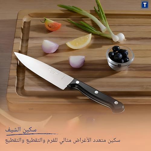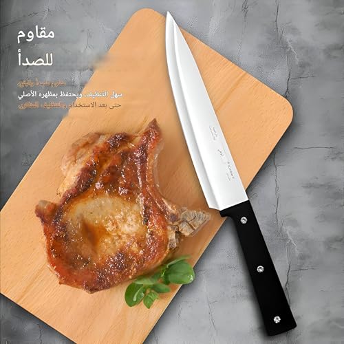 - يتميز سكين الشيف هذا بشفرة من الستانلس ستيل بطول 15 سم خضعت لمعالجة حرارية خاصة لضمان حافة حادة تدوم لفترة أطول، مما يوفر أداء قطع استثنائي لمجموعة متنوعة من الأطعمة والوصفات.