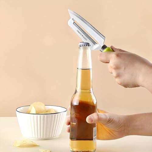 Generic - سكين طبخ - مقبض مريح 4 في 1 يتميز بحافة حادة من الستانلس ستيل ومقشرة مدمجة وفتاحة زجاجات ومكشطة لقشور السمك لاستخدام مريح ومتعدد الوظائف في المطبخ (قطعتين)
