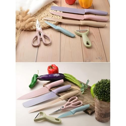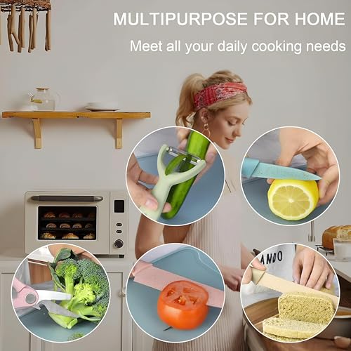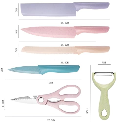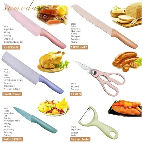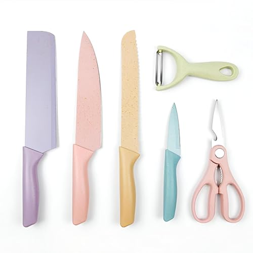 Generic - طقم سكاكين طهي ملونة من الفولاذ المقاوم للصدأ الكربوني مع طلاء غير لاصق للتقطيع والتقشير وإتقان الطهي