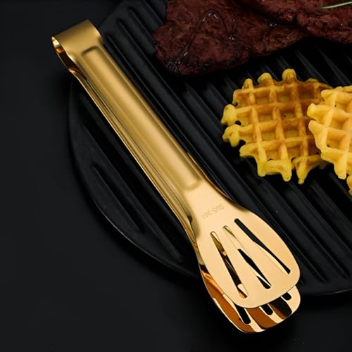 Generic - مساكة للطهي - مصنوعة من الفولاذ المقاوم للصدأ بلون ذهبي خالص للشواء، تصميم متعدد الأشكال، مظهر أنيق وعملي، قبضة قوية (الشكل الثاني)