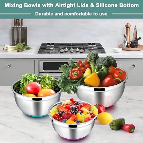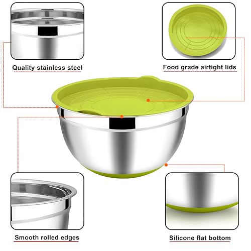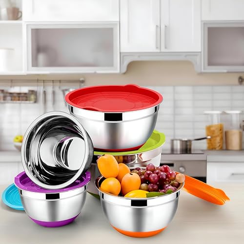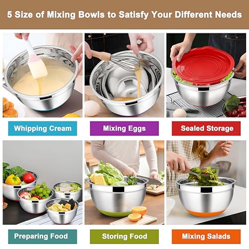Generic - مجموعة طبخ - مجموعة خلط وتخزين من الفولاذ مقاوم للصدأ مكونة من 5 قطع مع أغطية ملونة، مصممة للاستخدام متعدد الاستخدامات وسهولة الصيانة في غسالة الصحون.