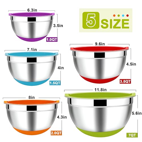 - مجموعة أوعية خلط كبيرة الحجم مكونة من 5 قطع مصممة لتلبية جميع احتياجات المزج والخلط في المطبخ مع متانة عالية وراحة لمهام الطبخ اليومية.