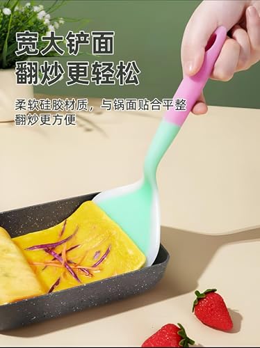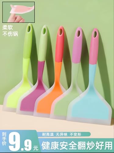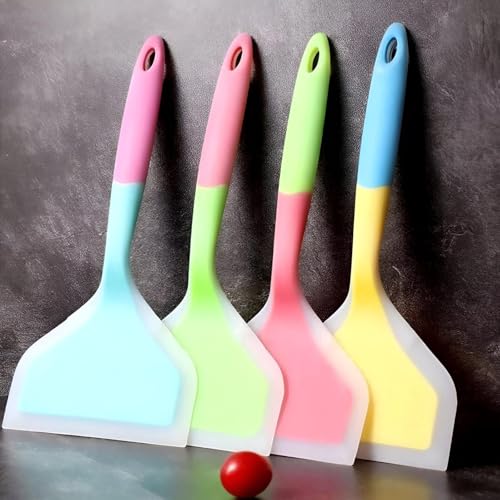 Generic - ادوات الطبخ - مجموعة ملاعق مسطحة سيليكون نابضة بالحياة بتصميم مقاوم للحرارة وغير لاصق، سطح عريض لسهولة التقليب، في لوحة الوان باستيل انيقة