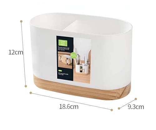 Generic - فلتر ادوات الطبخ - مصفاة ملاعق بلاستيكية مبتكرة تتميز بحجرتين داخليتين وحامل خشبي لتصريف مريح وترتيب ادوات منظم.