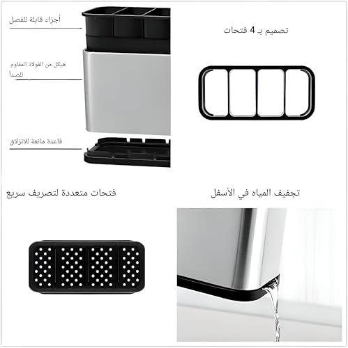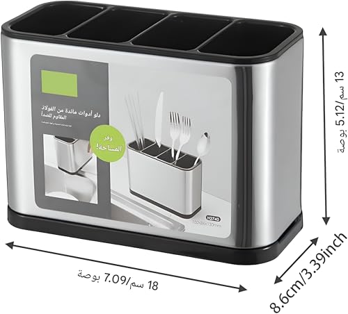 - تتميز بسعة كبيرة تبلغ 18 × 13 × 8.6 سم، وهي كافية لتخزين جميع أدوات المطبخ اليومية، مثل المعالق والشوك والسكاكين، مما يساعد على توفير مساحة في الأدراج وتقليل الفوضى على سطح الطاولة.