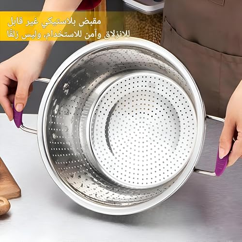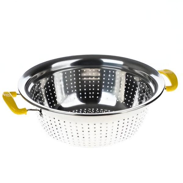 - مصنوعة من الستانلس ستيل الفاخر، تقاوم هذه المصفاة الصدأ والبقع والروائح غير المرغوب فيها، مما يضمن متانة ونظافة طويلة الأمد. لا يتأثر بدرجات حرارة الطهي العالية، مما يجعله موثوقًا بتصريف المعكرونة والأرز والخضروات المطهية على البخار وأكثر من ذلك دون القلق من التشوه أو الكسر.