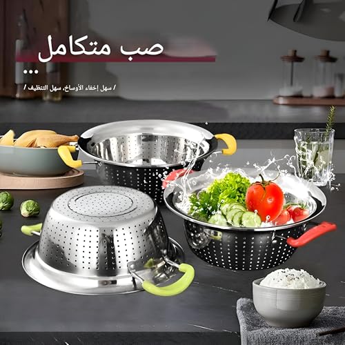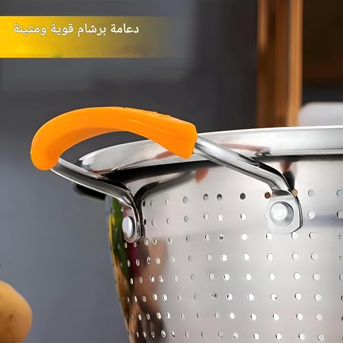 - مزودة بمقابض سيليكون مقاومة للحرارة، تضمن هذه المصفاة قبضة آمنة ومريحة حتى عند التعامل مع الأطعمة الساخنة. تبقى المقابض باردة الملمس، وتوفر ثباتًا غير قابل للانزلاق لمزيد من الأمان، وتضيف لمسة من الأناقة العصرية التي تكمل أي نوع من ديكور المطبخ.