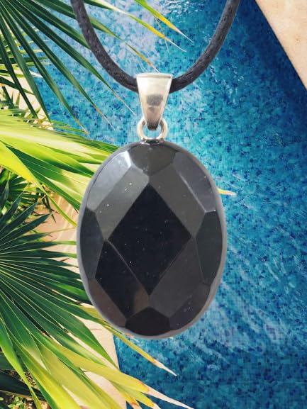 Generic - سلسلة بدلاية حجر عقيق أسود رائع - قصة الماسية مميزة - حجر طبيعي اصلي تماما - حجم وسط - مناسبة للجميع - هدية مميزة لمحبي الاحجار الكريمة الطبيعية