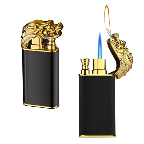 woqahoz - ولاعة رائعة فريدة قابلة لإعادة التعبئة، ولاعة عتيقة مبتكرة تعمل بالبوتان، ولاعة مقاومة للرياح، أفكار هدايا إبداعية للرجال والاب والزوج (دون غاز)