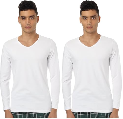 Cool - فانلة داخلية مرنة بأكمام طويلة ورقبة على شكل حرف V للرجال من كول، قطعة أساسية علوية، أبيض مقاس M