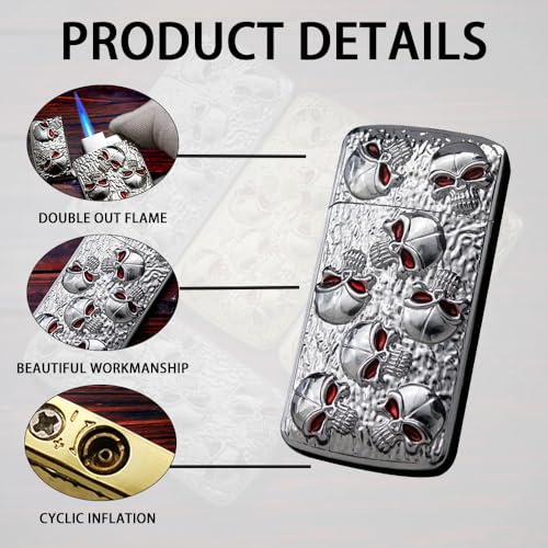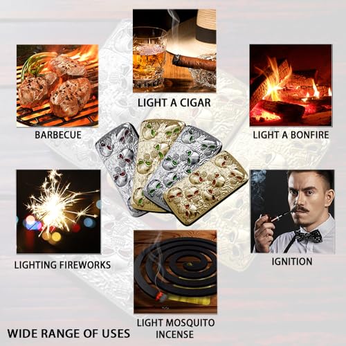 - [تصميم مبتكر] تم تصميم الولاعة الرائعة بعناصر جمجمة، وهي عصرية ومبتكرة. تطلق لهب أزرق مباشرة. تصميم الهيكل القابل للطي يجعل الولاعة فريدة من نوعها. تتميز بإخراج لهب مقاوم للرياح لضمان اشتعال موثوق به في بيئات مختلفة. أداة لا غنى عنها للتخييم في الأماكن الخارجية والرياضة والبقاء على قيد الحياة وغيرها من الأنشطة الداخلية والخارجية.