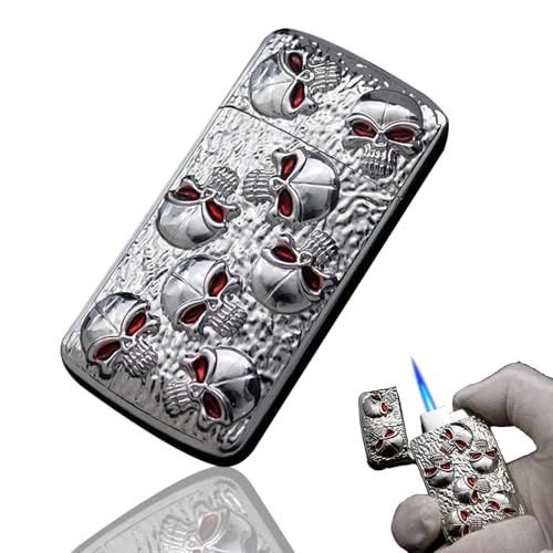 QMOWAE - ولاعة جمجمة رائعة، ولاعة شعلة نفاثة، ولاعة بوتان قابلة للنفخ قابلة لاعادة الملء، ولاعة معدنية مقاومة للرياح، ولاعة لهب ناعمة، هدية فريدة للرجال، شمعة للتخييم في الهواء الطلق (بدون غاز) - عين حمراء