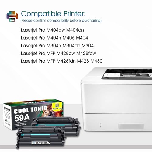 Cool Toner - خرطوشة حبر تصوير 59A CF259A مع رقاقة متوافقة مع اتش بي 59A 59X ليزر جيت برو M404dn وتونر M404dw MFP M428dw M428fdw M404n M428fdn M304n M304dn M404 M428 M304 M304 M406 M430CF2 59X 25 9A 2 Pack أسود