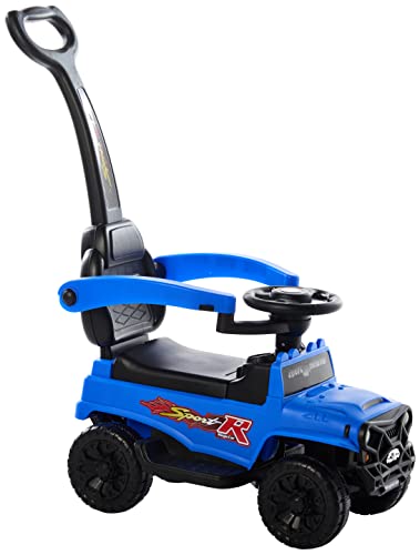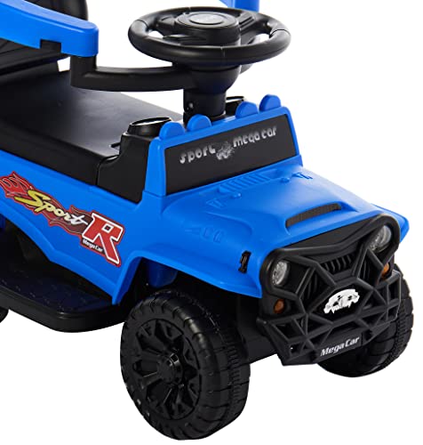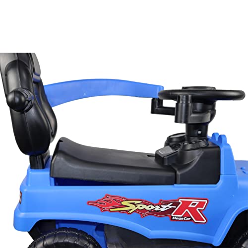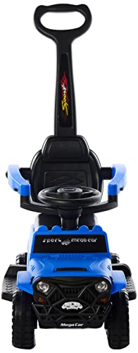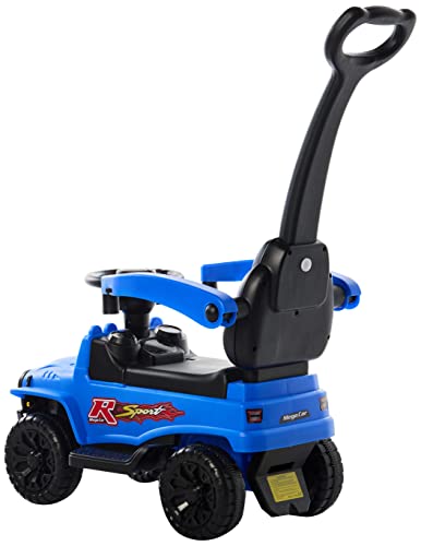 COOLBABY - سيارة ركوب 3 في 1 تعمل بالدفع والدواسة من كول بيبي لعبة ومشاية مع أصوات ومقبض وزمارة للأطفال أزرق FLBB906