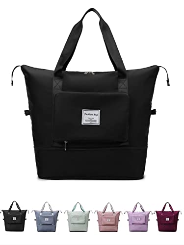COOLBABY - شنطة كول بيبي من القماش الخشن المطور القابل للطي ذات سعة كبيرة، قابلة للطي ومحمولة وخفيفة الوزن، مقاومة للماء، قماش اكسفورد للرياضة، الصالة الرياضية، العطلات، بلون اسود، عصرية, أسود