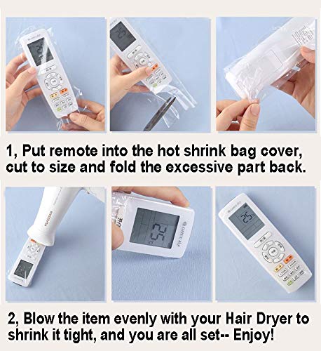 - 【سهل الاستخدام】قم بلف جهاز التحكم عن بعد داخل الغشاء واستخدم آلة النفخ لتقليص الغشاء بإحكام. هذا سيمنح جهاز التحكم عن بعد حماية 100% وبالتالي فهو آمن من الخدوش. كما نعلم أن امتصاص الغبار سيسبب ضررًا لمادة السيليكون في جهاز التحكم عن بعد، فإن استخدام هذا المحلول المحكم تمامًا سيزيد من عمر أجهزتك الإلكترونية بشكل كبير.