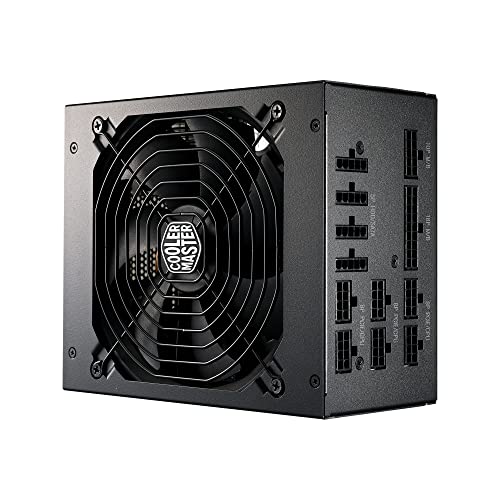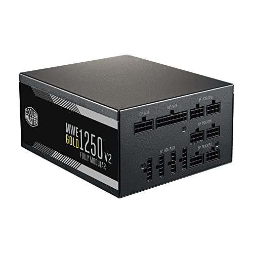 Cooler Master - باور سبلاي MWE جولد 1250 بمنفذ V2 ATX 3.0 (فيشة A/EU) من كولر ماستر، دعم موصلات ATX 3.0، موديل 80 بلس جولد 1050 واط، كأبل أسود مسطح، مروحة FDB مقاس 140 ملم، عتبة درجة حرارة عالية