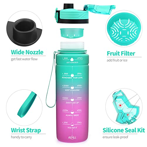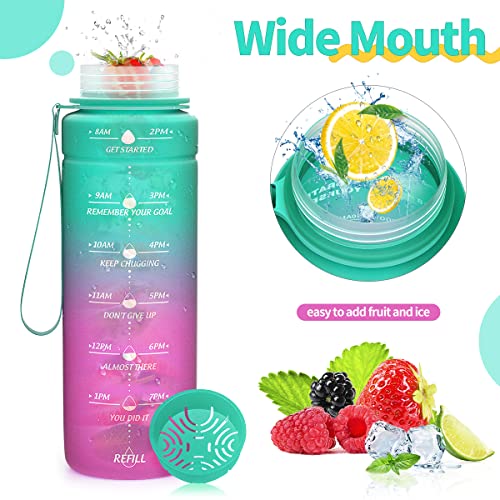 - 【زجاجة مياه مع علامات الوقت】: تتميز زجاجة المياه التحفيزية باقتباس ملهم فريد ومؤشر للوقت لمساعدتك على تتبع كمية المياه اليومية. بالإضافة إلى ذلك، يضمن لك الفم العريض المزود بفلتر إضافة ما يكفي من مكعبات الثلج والفواكه لصنع مشروبات تصنعها بنفسك..