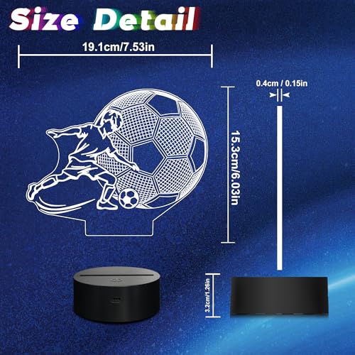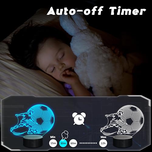 CoolGift Mart - أباجورة ليلية بتصميم كرة قدم بإضاءة ليد بصرية ثلاثية الأبعاد مع جهاز تحكم وتايمر للكريسماس وأعياد الميلاد للأولاد والأطفال والمراهقين من كول جيفت مارت