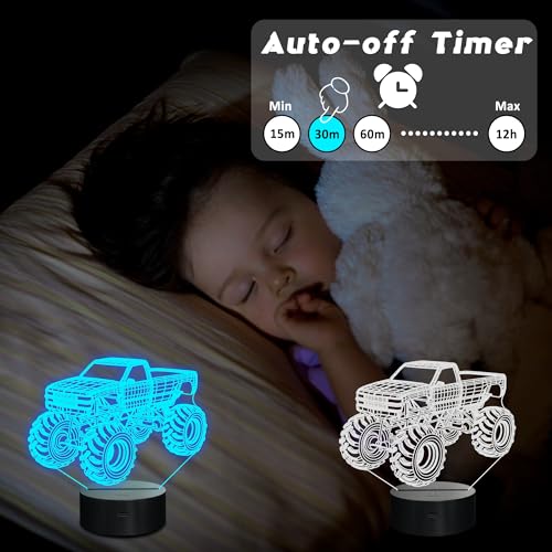 CoolGift Mart - مصباح ليلي بتصميم شاحنات مونستر للاولاد من كول جيفت مارت، وهمي بصري LED ثلاثي الابعاد مع جهاز تحكم عن بعد ومؤقت، فكرة هدية مثالية للكريسماس واعياد الميلاد والاطفال والمراهقين، متعدد الألوان
