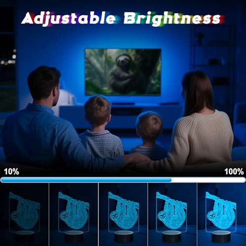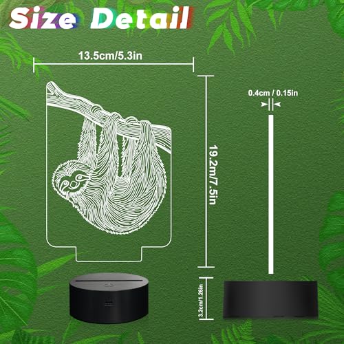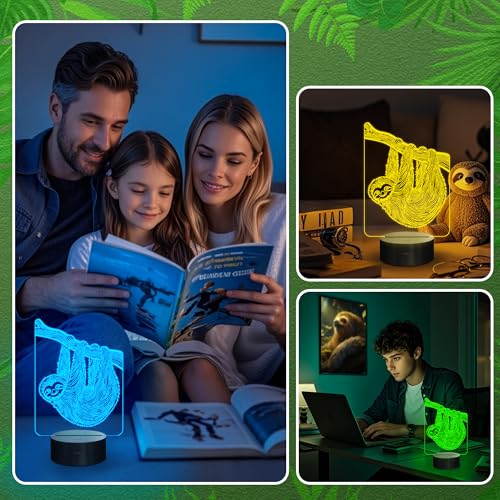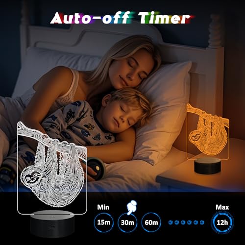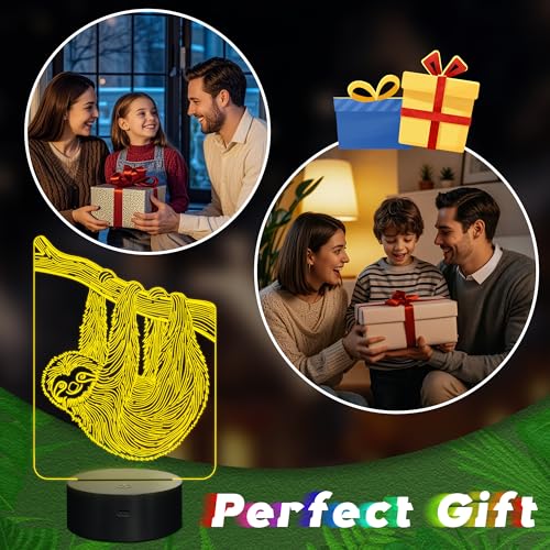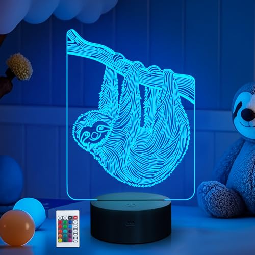 CoolGift Mart - مصباح ليلي على شكل حيوان الكسلان من كول جيفت مارت، مصباح LED بصري ثلاثي الابعاد مع جهاز تحكم عن بعد ومؤقت، هدايا عيد الميلاد لمحبي الكسلان والاطفال والبالغين