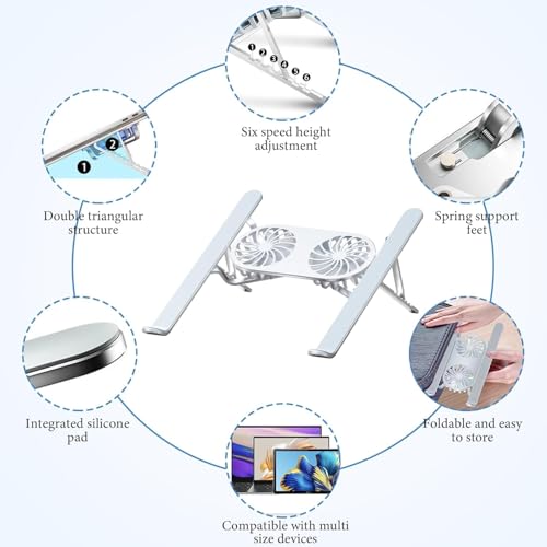 Generic - قاعدة تبريد ، حامل لابتوب قابل للطي، حامل نظام تبريد لابتوب مع مروحتين صامتتين، ارتفاع قابل للتعديل، مصابيح LED، للاجهزة مقاس 10 - 15.6 انش
