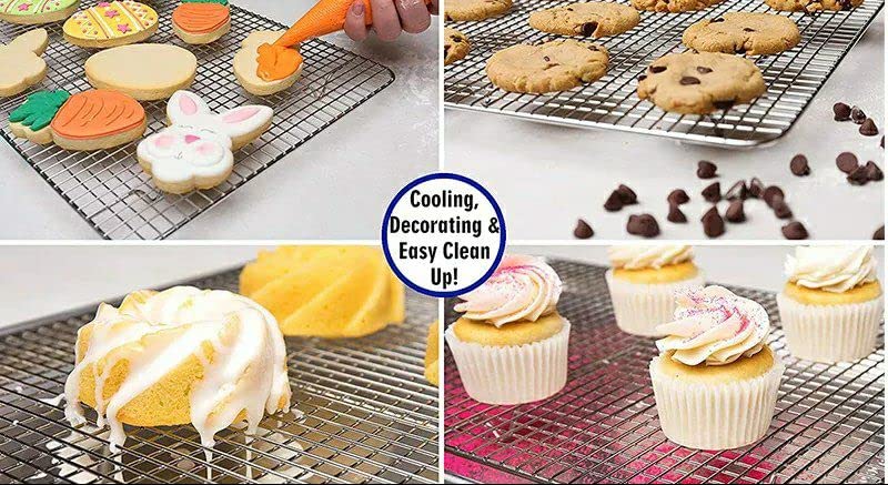 - مزايا التصميم: أقدام مرتفعة تحافظ على المخبوزات على بعد 2.5 سم فوق سطح المنضدة، بينما تمنع المسافة الشبكية الضيقة العناصر الصغيرة من السقوط من خلالها.