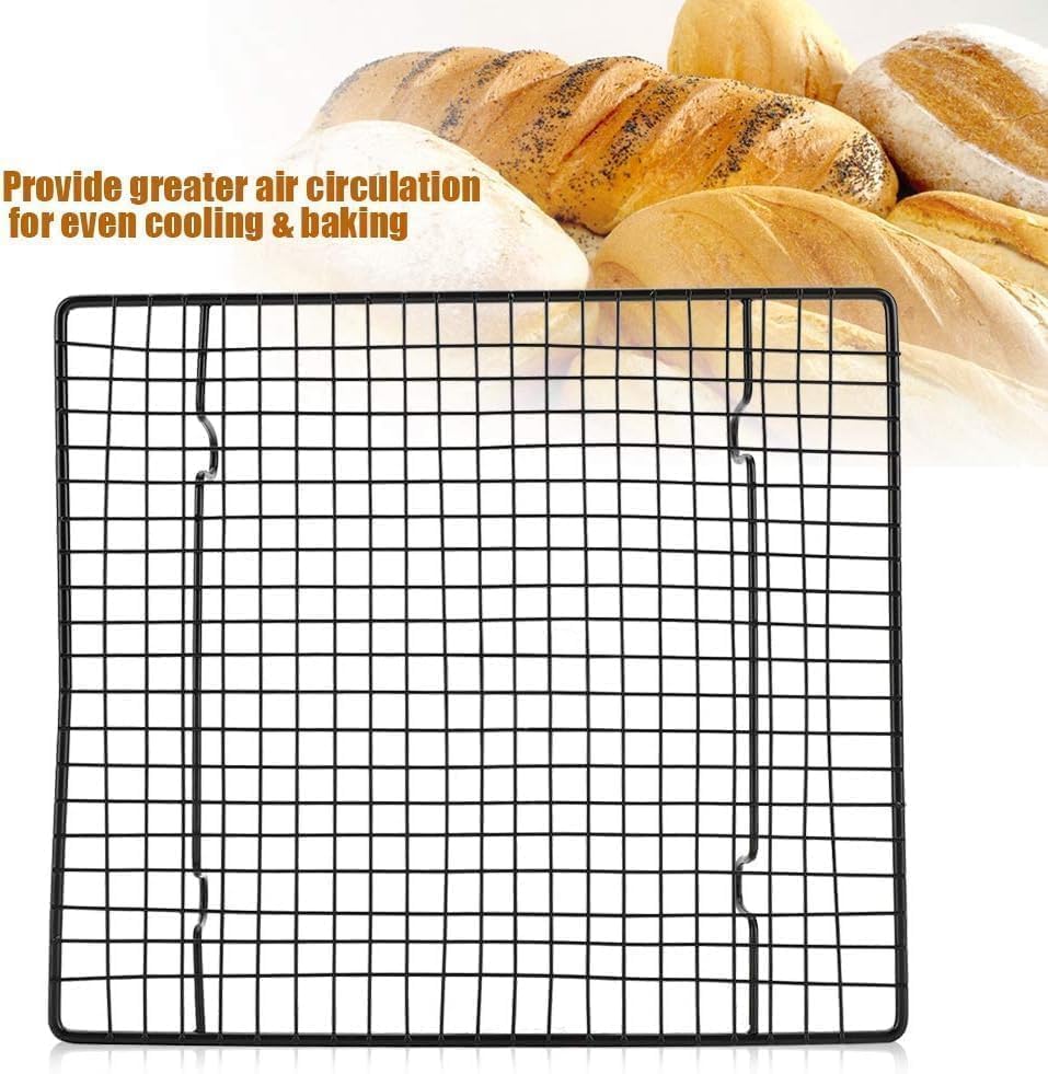 Generic - رف تبريد طعام سلكي مقاوم للالتصاق 40 سم، بتصميم مربع مع شبكة تهوية مستطيلة لضمان تبريد مثالي للخبز، أسود