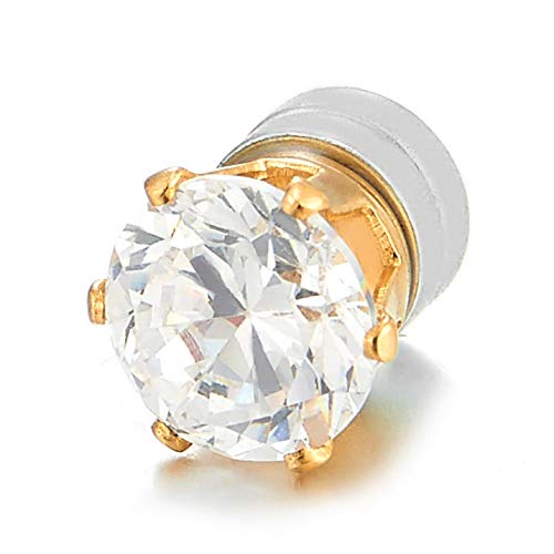 COOLSTEELANDBEYOND - حلق صغير بريمة مغناطيسي للرجال والنساء مرصع بحجر زركونيا مكعب من الستيل بلون ذهبي مع مشبك وهمي لا يحتاج لثقب الاذن ستانلس ستيل كوول ستييل اند بيوند