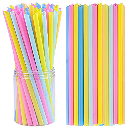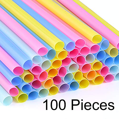 Cooraby - 100 قطعة شفاطات بلاستيكية ملونة كبيرة للسموذي من كورابيبي 6 ملم × 210 ملم، شفاطات شرب كبيرة للاستعمال مرة واحدة للحفلات وأعياد الميلاد والزفاف