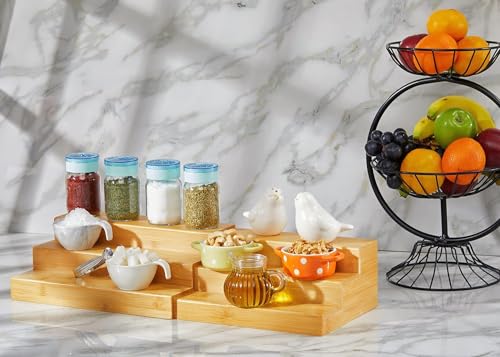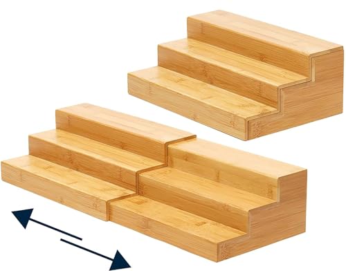 CooToly - منظم رف توابل لتنظيم دولاب المطبخ - تنظيم قابل للتوسيع من 3 طبقات مصنوع خيزران البامبو كوتولي بني
