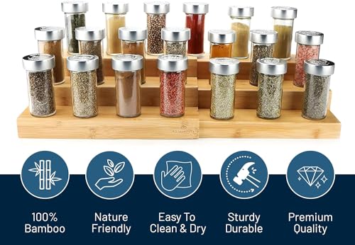 • [العبوة] - قطعة واحدة من رف تنظيم التوابل. تم صنع رف التوابل هذا من البامبو الطبيعي عالي الجودة، فهو متين وصديق للبيئة. يبدو جميلًا في أدراج المطبخ وعلى الأرفف