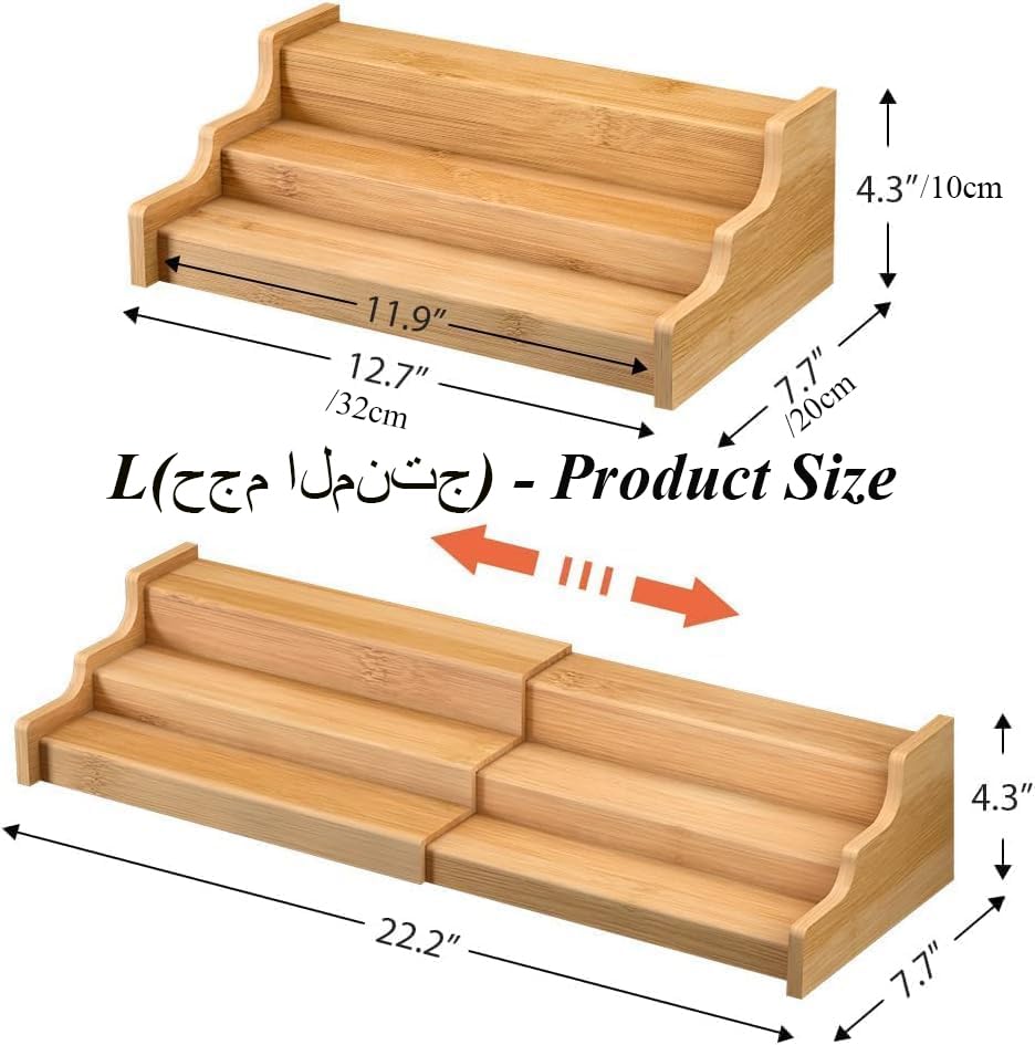 • [منظم خزانة مطبخ قابل للتعديل] - قم بتوسيع رف التوابل المصنوع من البامبو إلى المقاس الذي يناسب مساحتك واحتياجاتك، نطاق الطول من 22 إلى 39 سم. لا يمكن تغيير العرض والارتفاع