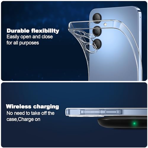 COPIKE - جراب حماية للكاميرا لموبايل سامسونج جالاكسي A15 4G / 5G مع 3 واقيات شاشة من الزجاج المقوى [وضوح يدوم طويلاً] غطاء سيليكون رفيع مضاد للصدمات كوبايك شفاف