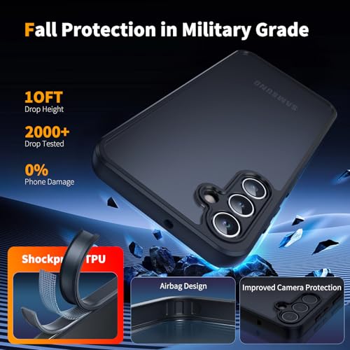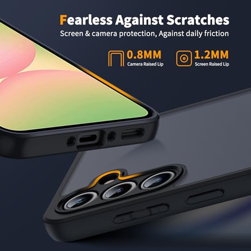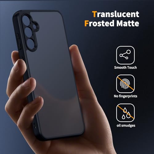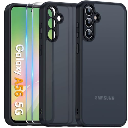 COPIKE - حافظة حماية غير لامعة لهاتف سامسونج جالاكسي A56 الجيل الخامس 5G وواقي الكاميرا، حافظة شفافة مضادة للصدمات ومضادة لبصمات الأصابع مع قطعتين من الزجاج المقسى من كوبيك، اسود