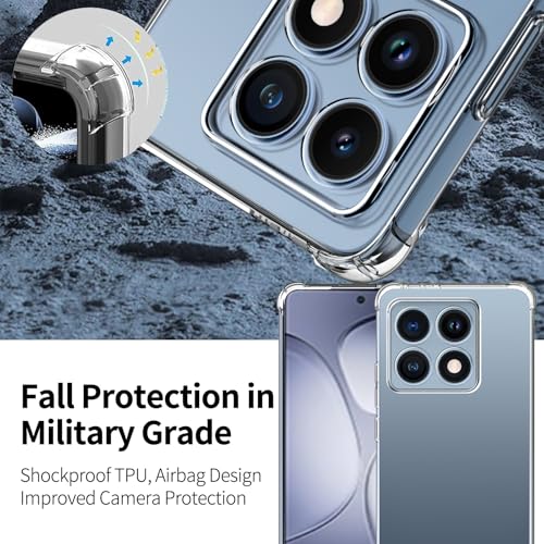 COPIKE - جراب مضاد للصدمات لموبايل شاومي 14T 5G (ليس لـ 14T Pro) مع قطعتين من الزجاج المقوى وحماية الكاميرا، من السيليكون الناعم والبولي يوريثين الحراري مضاد للصدمات، شفاف من كوبيك