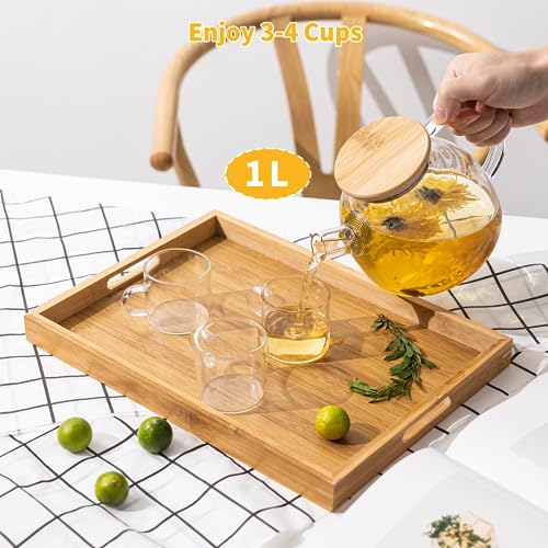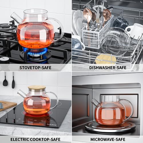 COPOTEA - ابريق شاي زجاجي مع مصفاة - 1000 مل/33 اونصة، غلاية شاي امنة للاستخدام على الموقد للشاي المتفتح واوراق الشاي السائبة