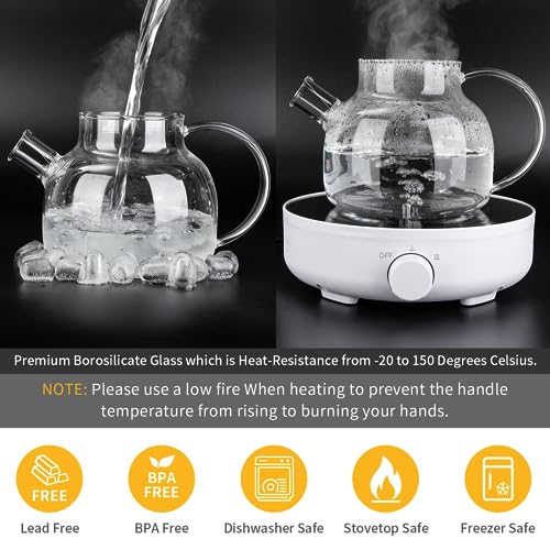 - استمتع بمتانة وجودة استثنائية: إبريق الشاي الزجاجي هذا مصنوع من زجاج البوروسيليكات الممتاز المقاوم للحرارة من -20 إلى 150 درجة مئوية. لقد صنعنا كوبوتيا بزجاج سميك للغاية 2 ملم ومقبض مريح لقبضة قوية. ملاحظة: يرجى استخدام نار منخفضة عند التسخين لمنع ارتفاع درجة حرارة المقبض وحرق يديك.