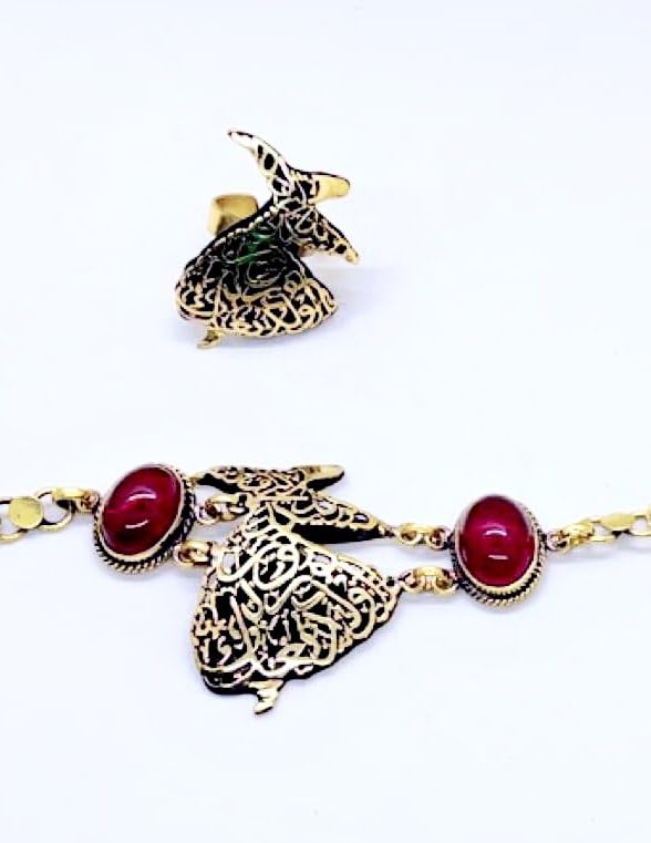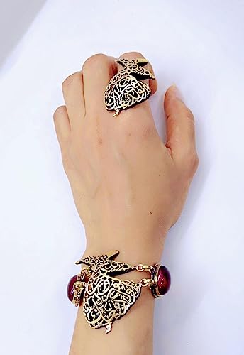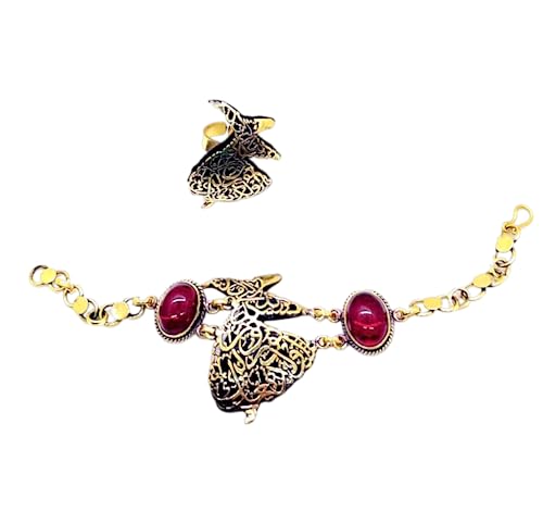Generic - طقم من النحاس اسورة وخاتم (أحمر داكن) مناسب للهدايا، للنساء