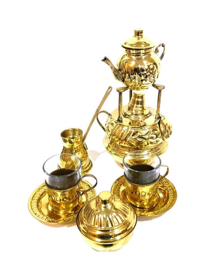Generic - طقم قهوة نحاسي مع ابريق وكوبين في الطبق وسكر ذهبي