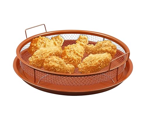 Generic - سلة نحاسية مقرمشة - صينية مقلاة هوائية دائرية غير لاصقة للطهي الخالي من الزيت، هيكل من الستيل الكربوني، لا تنقلب، مثالية للوجبات المقرمشة