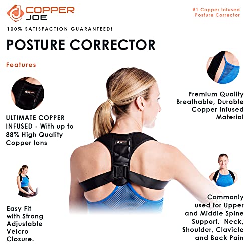 Copper Joe - مصحح وضعية الجسم من كوبر جو - من النحاس بجودة ممتازة - قابل للتعديل بالكامل لدعم منتصف العمود الفقري العلوي والرقبة والكتف والترقوة وتسكين الام الظهر- للرجال والنساء (X- XL)، نايلون