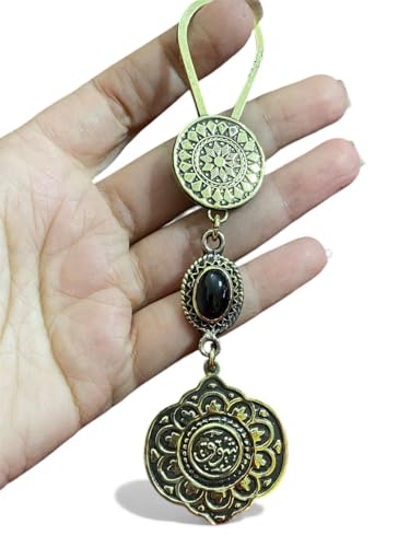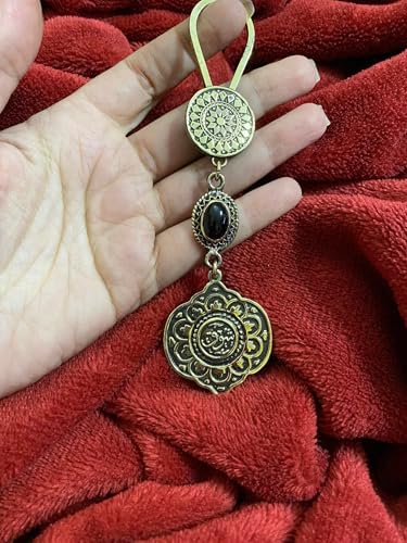 Generic - ميدالية مفاتيح نحاس - مزخرفة بخط عربي - سلسلة مفاتيح مصنوعة يدوياً - هدية مميزة تعزز الروحانية والأناقة - مدعمة بحجر عقيق ألوان متعددة